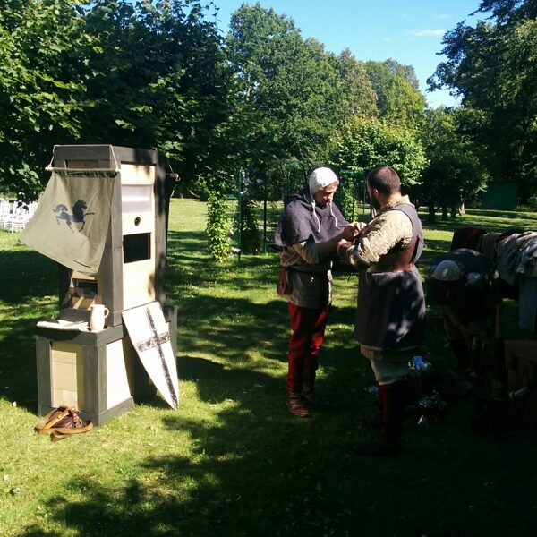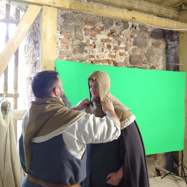 Viduslaiku foto piedzīvojuma laikā Jūsu pasākuma viesiem būs iespēja ieģērbties viduslaicīgos apģērbos, kā arī piemērīt bruņas un pacilāt viduslaicīgus ieročus – šķēpu, zobenu, pīķi.