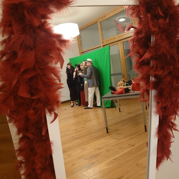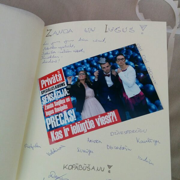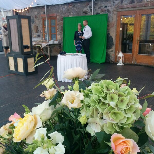 Pateicoties zaļajam ekrānam, uz bildes iespējams izvēlēties jebkādu ilustrāciju, uzrakstīt pasākuma nosaukumu un datumu, jubilāra vai jaunā pāra vārdu, uzņēmuma logo/saukli, u.c. dizaina variācijas.
